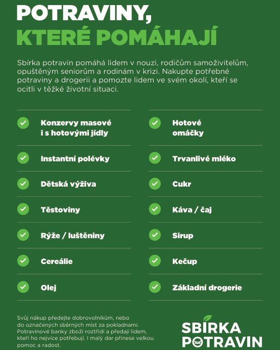 Už v sobotu 8. listopadu 2025 se můžete zapojit do tradiční Potravinové sbírky. Stačí při nákupu v obchodním domě Tesco v Šenově u Nového Jičína přidat do košíku trvanlivé potraviny nebo drogerii navíc a odevzdat je dobrovolníkům Charity Nový Jičín.