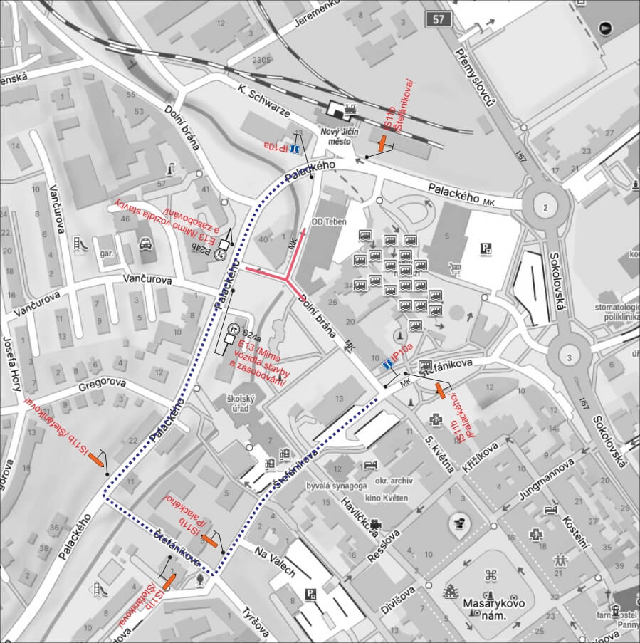 Od pondělí 16. února 2026 budou ulice Dolní brána a U Grasmanky neprůjezdné. Most přes potok Grasmanka se bude opravovat. Provoz na pozemních komunikacích se bude řídit přechodným dopravním značením. Objízdná trasa povede po Štefánikově a Palackého ulici. Objízdnou trasou budou jezdit i vozy MHD. Do ulic Dolní brána a U Grasmanky bude automobilům vjezd umožněn jen částečně. Obě ulice budou nově obousměrné, vozidla se budou pro výjezd v ulicích otáčet. Náhradní trasa pro pěší povede ve směru od centra přes ulici Dolní brána, dále ulicí U Grasmanky a Palackého ulici. Stejná je i oficiální trasa v opačném směru.