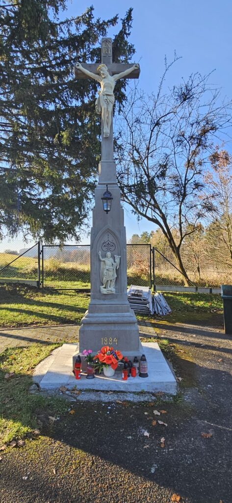 „Kříž, který nese letopočet 1884, byl už hodně poškozený. Chyběla na něm konzola s lampičkou, některé části byly vydrolené a písmo téměř nečitelné,“ řekl místostarosta Nového Jičína Jaroslav Perútka. Restaurátor po odstranění biologických nánosů a dalších nečistot kámen zpevnil a napustil speciálním roztokem. „Trhliny vyspravil injektážní směsí, defekty zatmelil a následně barevně a plasticky vyretušoval,“ popsal práce ředitel Technických služeb Nový Jičín Pavel Tichý.